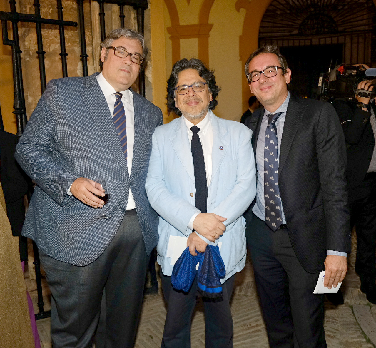 Una impresionante mapping, proyectado sobre la fachada del Palacio de Pedro I, acompañado por músicos de la Orquesta Barroca de Sevilla, fue uno de los puntos álgidos de la cena, a la que asistieron también destacadas personalidades del mundo de la cultura y la sociedad, sevillanas, autoridades políticas, prensa y escritores como Juan Eslava Galán, María Dueñas, Daniel Ruiz, Eva Díaz Pérez, Luis Manuel Ruiz, Fernando Iwasaki, Juan Manuel de Prada, Pablo Gutiérrez, Antonio Rivero Taravillo, Guillermo Busutil, Juan Lamillar, Jacobo Cortines, Manuel Lozano Leyva y Juanjo José Téllez, entre otros.